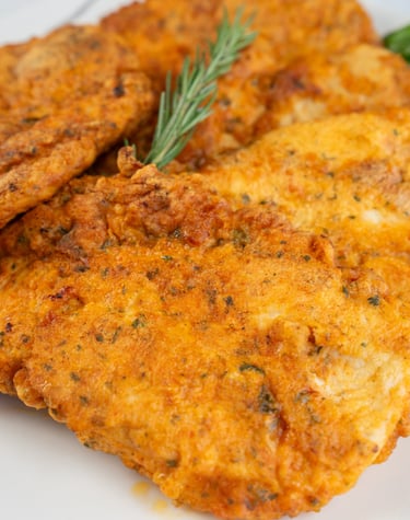Chicken Breast coated in flour and eggs, baked to perfection.