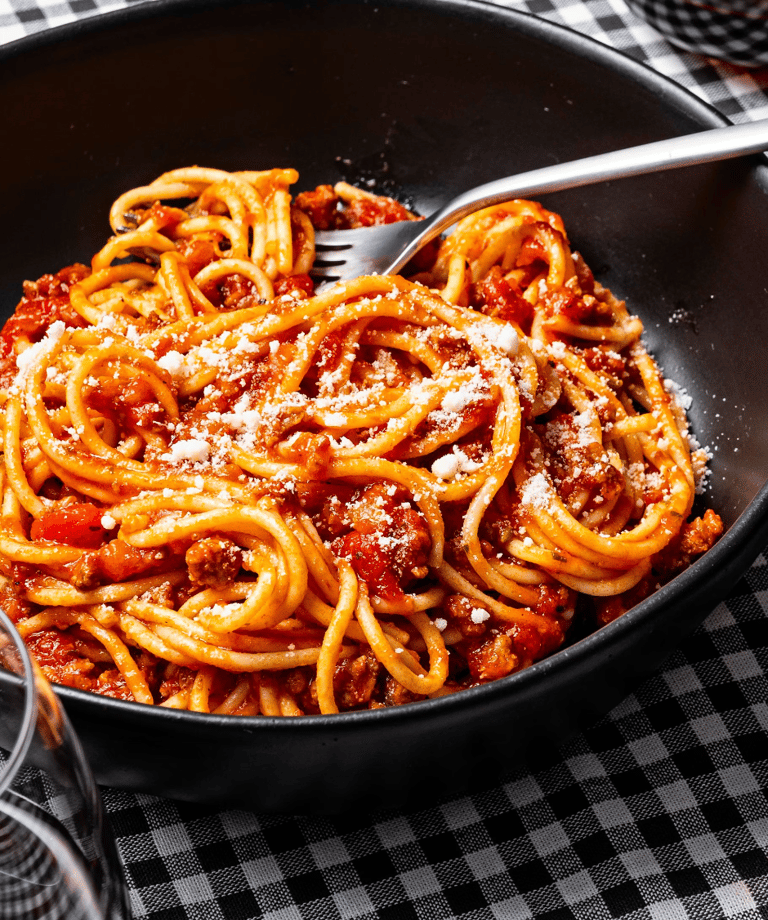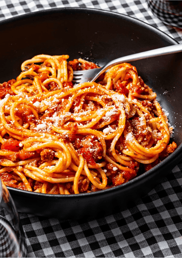 Tender pasta tossed in a rich, tangy marinara sauce made from tomatoes, garlic, and herbs.
