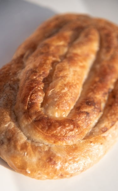 Spinach, cheese and eggs rolled in a dough made from scratch baked to perfection.